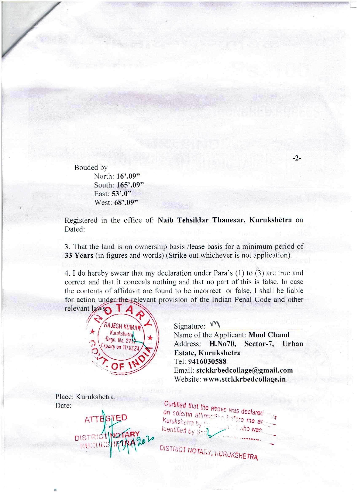Seth Tek Chand College of Education, Rattan Dera Road , Kurukshetra, which aims to provide quality education and to the future teachers in the B.Ed. College.